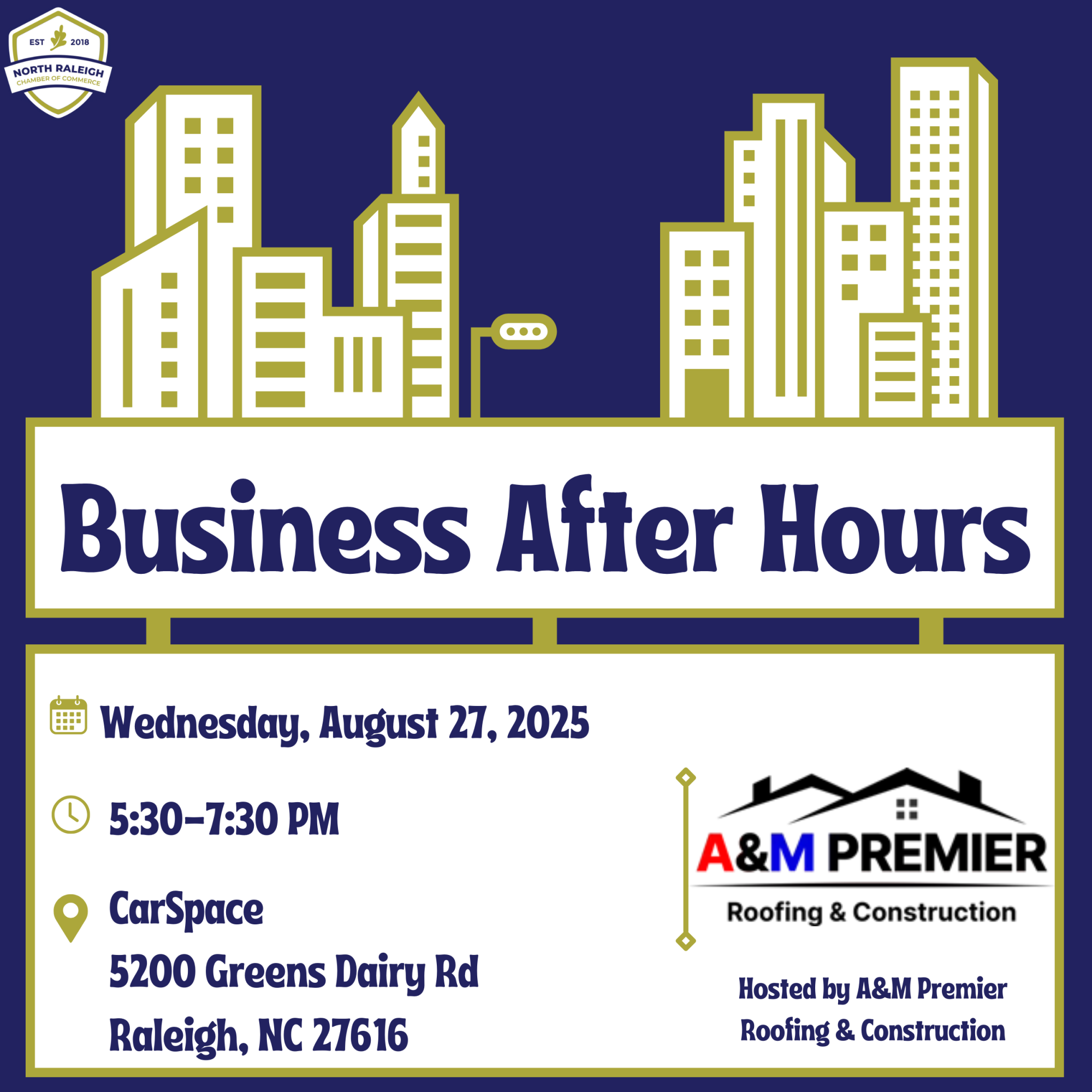 Join us for the North Raleigh Chamber of Commerce's monthly Business After Hours—a perfect opportunity for members and non-members alike to connect, collaborate, and expand their networks! Enjoy an evening of relaxed networking, where you can meet new people, strengthen existing relationships, and explore potential business opportunities. This casual, after-work event is designed to bring together professionals from diverse industries across the North Raleigh area.