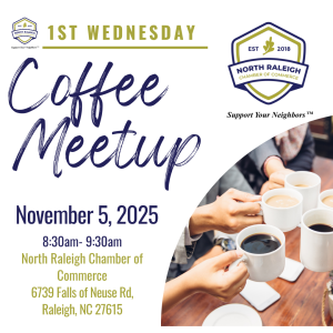 Join us for coffee and camaraderie with North Raleigh Chamber members. This monthly event is a great way to engage with other chamber members and learn more about how to get involved in the Chamber while getting to know fellow chamber members and how to partner together to create more business.