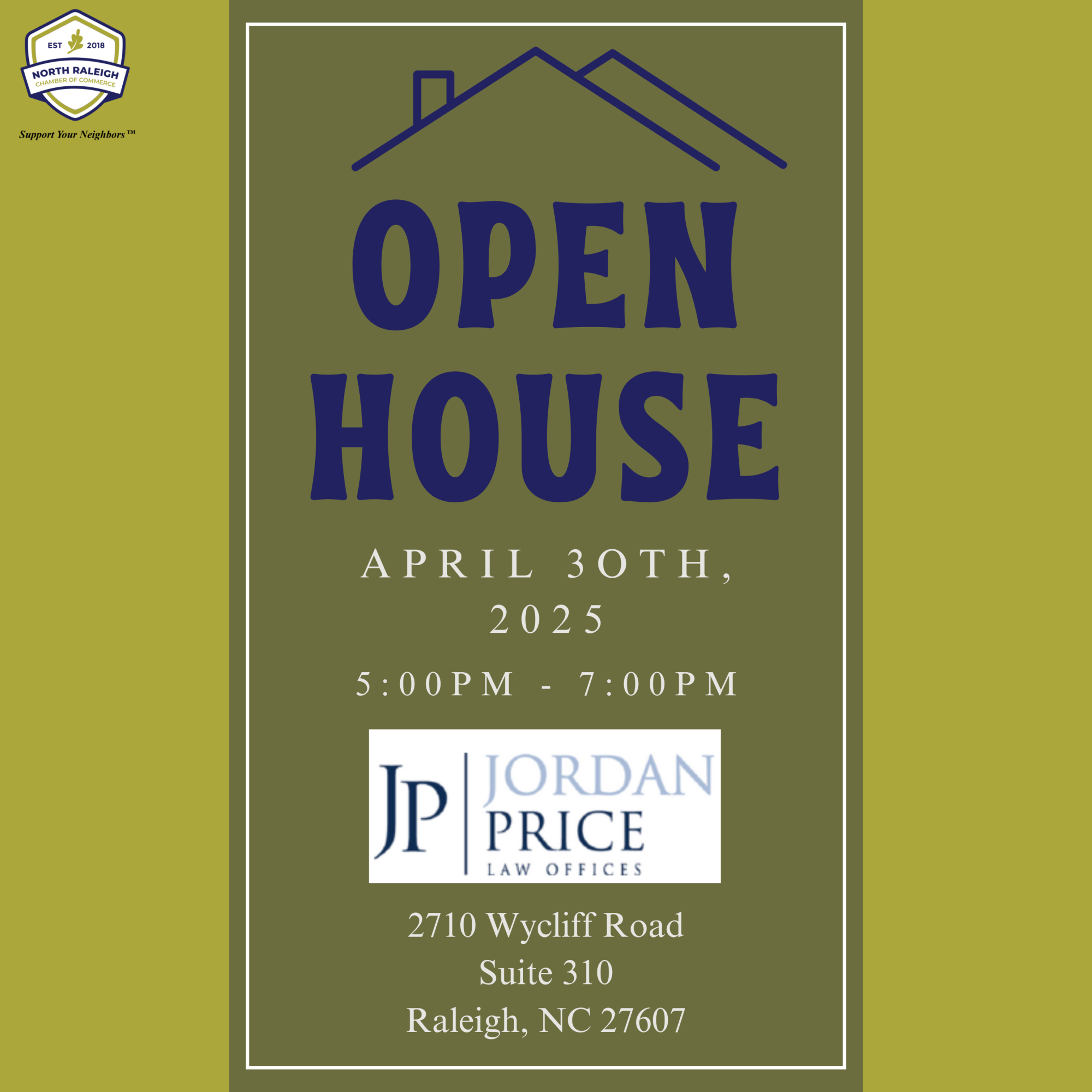 Join us for Jordan Price Law Office's Open House. Tour the space, connect with local professionals, and learn more about what they offer. Don't miss this great networking opportunity!
