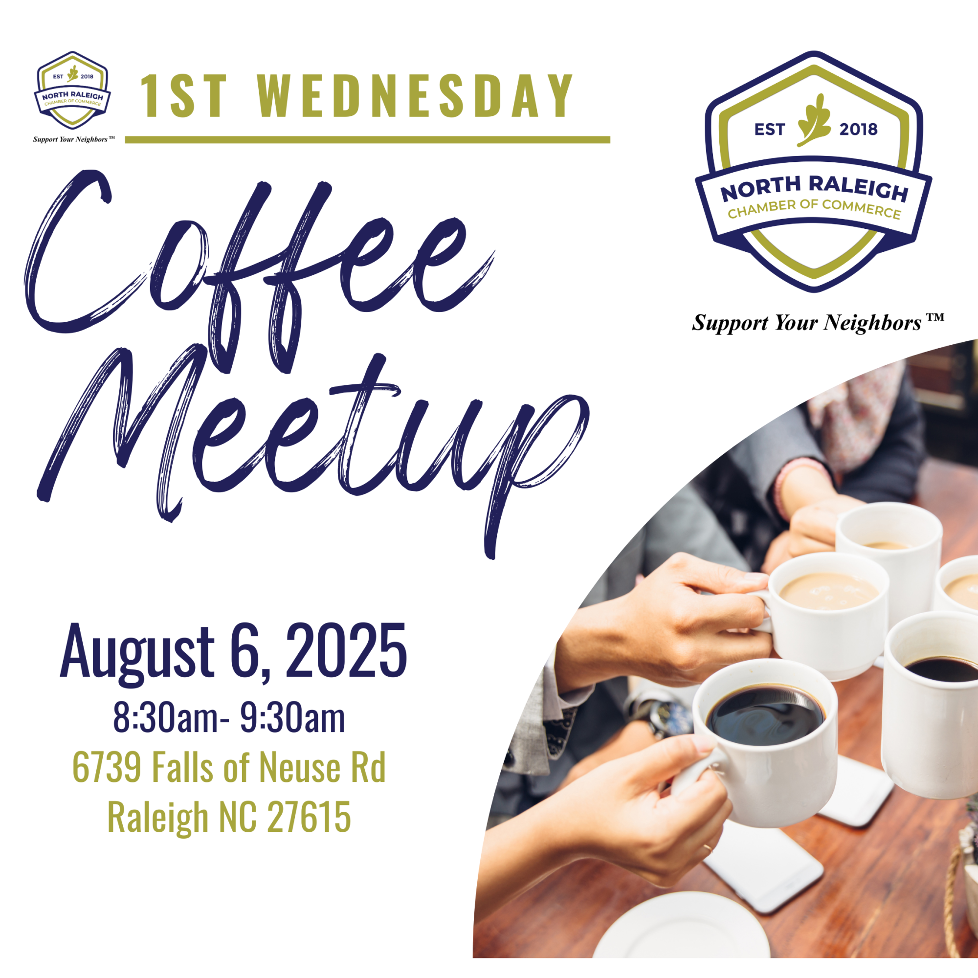 Join us for coffee and camaraderie with North Raleigh Chamber members. This monthly event is a great way to engage with other chamber members and learn more about how to get involved in the Chamber while getting to know fellow chamber members and how to partner together to create more business.